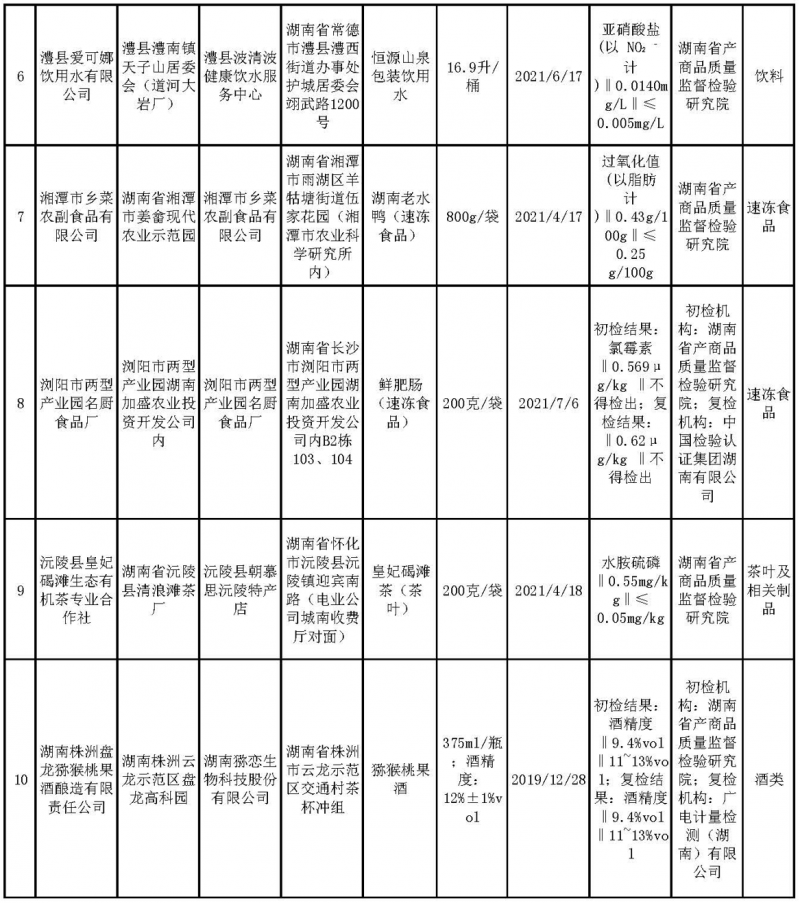 除以上商品外,也有2批號(hào)不過(guò)關(guān)試品為:湖南省獼戀生物技術(shù)股權(quán)有限責(zé)任公司售賣(mài)的,允差湖南省株洲市蟠龍奇異果水果酒釀制有限責(zé)任公司企業(yè)生產(chǎn)制造的奇異果水果酒驗(yàn)出酒精含量新項(xiàng)目不符食品衛(wèi)生安全國(guó)家行業(yè)標(biāo)準(zhǔn)要求;湖南大唐官府山臻現(xiàn)代化農(nóng)業(yè)開(kāi)發(fā)設(shè)計(jì)股權(quán)有限責(zé)任公司生產(chǎn)和銷(xiāo)售的土平菇(蔬菜制品)驗(yàn)出鎘(以Cd計(jì))新項(xiàng)目不符食品衛(wèi)生安全國(guó)家行業(yè)標(biāo)準(zhǔn)要求。