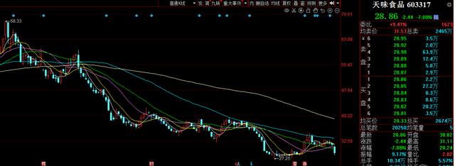 今日調(diào)味料版塊股票再度下跌,天味食品(603317)盤(pán)里一度近股票跌停,中炬高新(600872)股票價(jià)格再度破近年來(lái)最低,海天味業(yè)(603288)、涪陵榨菜(002507)均再次下挫發(fā)展趨勢(shì)顯著。