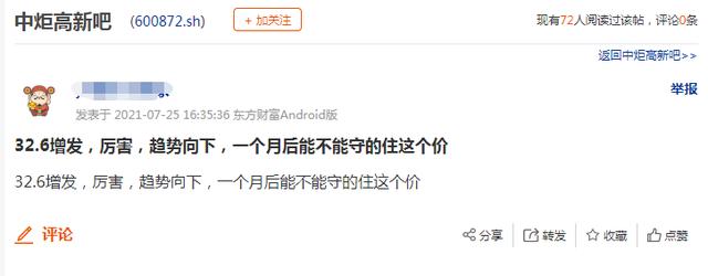 信息一出,中炬高新股吧網(wǎng)民們顯著不從容了。有些人留言板留言稱,“誰會說控股股東差錢?一下77億多元定向增發(fā)”,“這一波到43.5元了”。也有網(wǎng)民消極地表明,“32.6元公開增發(fā),強大,發(fā)展趨勢往下,一個月后能否守的住這一價”。