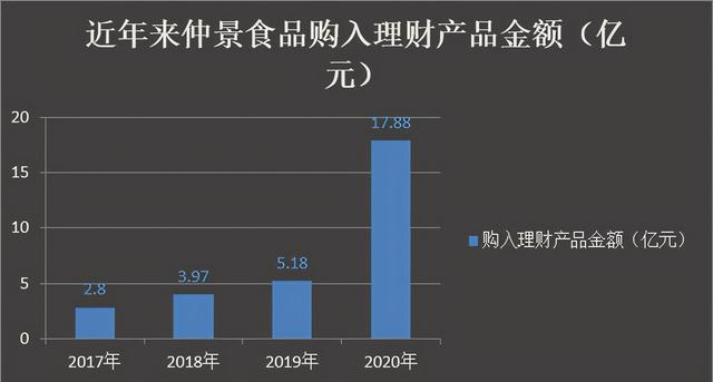 實(shí)際上,2017年-2020年,企業(yè)選購(gòu)?fù)顿Y理財(cái)產(chǎn)品額度為2.8億人民幣、3.97億人民幣、5.18億人民幣、17.88億人民幣,均達(dá)幾億元。