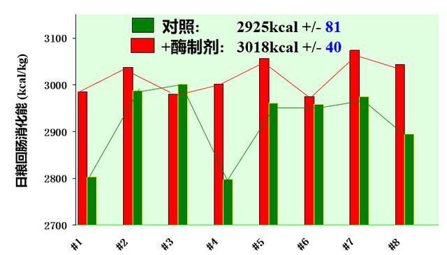 尤其是在幼年期小動物環(huán)節(jié),自身胃蛋白酶系統(tǒng)發(fā)育不徹底,針對豬仔而言,斷奶后前奶水中主要是脂質(zhì)和容易吸收的opo結(jié)構(gòu)脂,其糖類與碳水化合物關(guān)鍵以乳清蛋白為主導(dǎo),不含小麥粉和化學纖維,而且在這個環(huán)節(jié)豬仔胃中硫酸代謝非常少,因此 其自身胃蛋白酶系統(tǒng)軟件還沒發(fā)肓徹底。而斷奶后針對豬仔而言是生命中一個很大的應(yīng)激反應(yīng),許多 科學研究數(shù)據(jù)信息發(fā)覺在停奶后,豬仔胃蛋白酶活驟降,這對原本就敏感的消化道也是始料不及。因此 ,外源性酶的補給對豬仔安全性渡過斷奶后環(huán)節(jié)也是十分重要的。而就算是進到生長發(fā)育肥育環(huán)節(jié),豬后腸針對化學纖維性原材料的使用率就很低,因此,為了更好地把喂養(yǎng)成本費中最貴的精飼料使用價值利潤最大化,外源性酶的增加也是十分關(guān)鍵的。簡單點來說,無論是內(nèi)部原因-豬仔自身消化道不健全,肥豬對化學纖維運用能力有限,或是誘因-精飼料構(gòu)成繁雜,化學纖維性成份高,精飼料批號差別,酶制劑在豬料中的應(yīng)用全是不可缺少的。有分析信息說明在飼料廠中應(yīng)用酶制劑不但能提升回腸消化吸收能,并且能減少回腸消化吸收能基因變異度(圖2)。因此在豬料中選用適宜的飼用酶制劑針對釋放出來精飼料營養(yǎng)物質(zhì)、降低精飼料差別、改進小動物特性尤為重要。