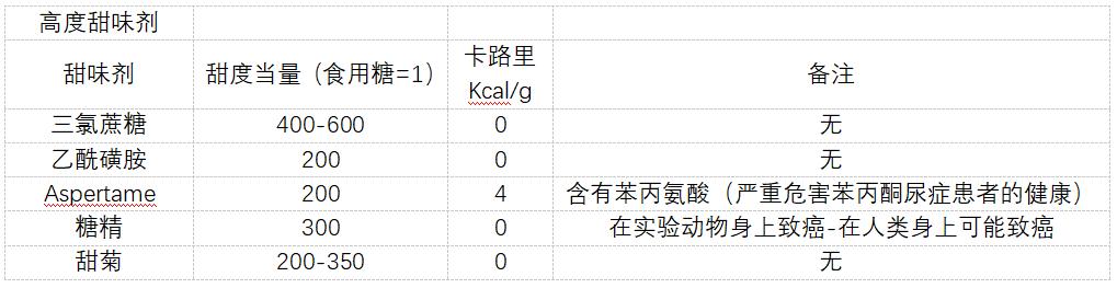 高寬比甜味素-三氯蔗糖、阿斯巴甜、甜菊糖等。