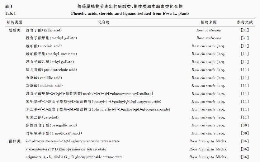薔薇屬綠色植物還分開出酚酸類、甾類類和木脂素類物質(zhì)等,實(shí)際見表1。