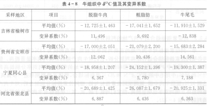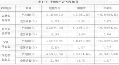 各自從在我國(guó)四大牛羊肉種植區(qū)中選擇吉林省、貴州省、甘肅和河北省4個(gè)點(diǎn)共收集了59只羊的牛羊肉試品。牛羊肉原產(chǎn)地的基本資料及取樣點(diǎn)的設(shè)計(jì)方案見(jiàn)表4-7。