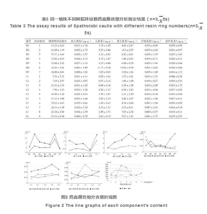 取雞血藤手鐲粉末狀1.0 g,高精密稱取,每次中藥材平行面3份,按“2.2.3”項下方式制取供試品水溶液并舉樣測量,并測算成分。結果見表3和圖2。