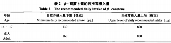 英國、澳大利亞和一些歐洲各國以500,000樣版做出的時興性病學調(diào)研數(shù)據(jù)顯示:均值每日強烈推薦攝取2~7mg全反式β-胡羅卜素是安全可靠的,可做為日強烈推薦攝人量。在中國發(fā)布的《(保健食品原料目錄(一)》中,不一樣年齡階段群體的全反式盧一胡羅卜素強烈推薦攝取量詳細信息見表1。比照歐洲國家和國內(nèi)的日強烈推薦攝取量差別明顯。在我國在保健品中要求的應(yīng)用限制(1.2mg/d)遠少于歐洲國家的應(yīng)用限制(7mg/d)。