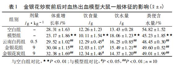 3.1金銀花茶炒炭前后左右對血熱出血實體模型大白鼠休重年增長率、飲食搭配量、每天喝水量、排泄物水分含量的危害
