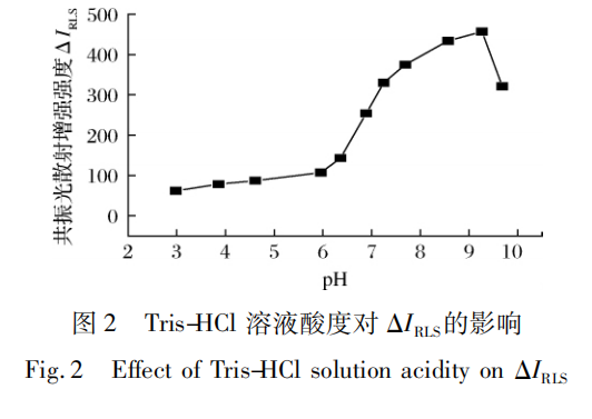 于10mL具塞比色管中,精確添加2.50mL維秘藍(lán)B實(shí)際操作液、1.50mLpH9.27Tris-HCl水溶液及0.00~2.00mL甜蜜素規(guī)范實(shí)際操作液,自來水溶解稀釋至標(biāo)尺,混勻。靜放20min后,在瑩光光度計(jì)里設(shè)λex=λem=220nm,間隙5nm,掃描儀共震光透射光譜儀,在光譜儀曲線圖的特點(diǎn)峰369nm處測(cè)量管理體系水溶液的共震光透射抗壓強(qiáng)度IRLS及實(shí)驗(yàn)試劑空缺的共震光透射抗壓強(qiáng)度I0,再由IRLS-I0求取管理體系水溶液的共震光透射提高抗壓強(qiáng)度ΔIRLS。