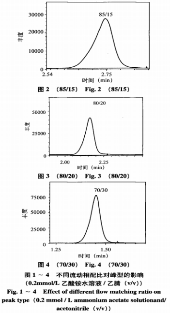 Shim-packGIST2.0mmI.D×150mmL,2.0μm;流動(dòng)性相A:0.2mmol/L乙酸銨溶液,B:乙腈,等度過(guò)柱(A/B=70/30);流動(dòng)速度(0.4mL/min);柱溫:40℃。進(jìn)樣量10μL。