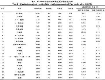1、松樹皮油揮發(fā)物化學(xué)成分分析
