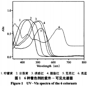 用紫外線-由此可見光度計(jì)在200~800nm光波長(zhǎng)處對(duì)10種食用添加劑開展掃描儀,自來水作對(duì)照品。