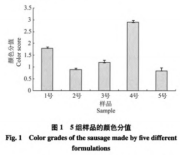 經(jīng)得分較為,每組試品色調(diào)得分差別明顯(P<0.05)。2號(hào)、2號(hào)、3號(hào)、5號(hào)不增加黑色素的臘腸自身色調(diào)更貼近灰白的,色調(diào)不好看,不可以引發(fā)我們的胃口,為了更好地提升大家購買欲望,肉食品公司會(huì)加上一定的添加物,只加上亞硝酸鈉做為頭發(fā)顏色劑的2號(hào)評(píng)分不高,試品色調(diào)為灰白,豬瘦肉一部分稍有淡粉色,而加上了0.015%胭脂蟲紅的11號(hào)臘腸色調(diào)為吸引人的淡粉色在超低溫臘腸一個(gè)月保存期內(nèi),五組臘腸色調(diào)轉(zhuǎn)變并不大,尤其是5號(hào)的色澤保存期內(nèi)基本上沒轉(zhuǎn)變,這與胭脂蟲紅可靠性相關(guān)。胭脂蟲紅的主要成分檸檬黃酸,較為耐高溫、耐光性、耐發(fā)醇,顏色較堅(jiān)固。缺陷是胭脂蟲紅易被SO2漂白劑,色調(diào)受pH的干擾轉(zhuǎn)變比較大,低pH下呈橘紅色,隨pH上升,色調(diào)變成鮮紅色,偏堿時(shí)呈藍(lán)紫色。沒有加上黑色素的四組臘腸中,2號(hào)有些許的淡粉色,亞硝酸鈉只是對(duì)豬瘦肉起功效,假如臘腸豬瘦肉成分較高,色調(diào)也會(huì)非常漂亮,但是臘腸中豬瘦肉所占比率不大,因此頭發(fā)顏色不顯著,如果是香腸,頭發(fā)顏色實(shí)際效果會(huì)非常好,肉食品中添加亞硝酸鈉,其與肉中的乳酸菌產(chǎn)生復(fù)分解功效產(chǎn)生亞硝酸鹽,亞硝酸鹽再溶解造成氧化硫,氧化硫與全身肌肉膠原纖維中的肌鈣蛋白融合造成紅色的亞硝基肌鈣蛋白或亞硝基血紅蛋白濃度,使肉食品具備艷麗的玫瑰紅色。