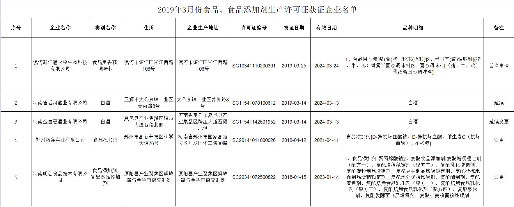 河南省市場監(jiān)督管理局關于食品、食品添加劑生產許可證獲證企業(yè)的公告