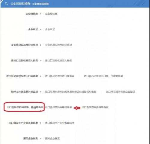 企業(yè)經(jīng)營管理和監(jiān)管→大量→出入口食品種植場辦理備案。
