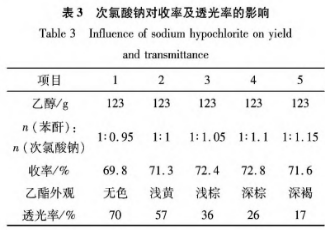 固定不動氟苯化液和酒精使用量,更改氫氧化鈣使用量,調查氫氧化鈣的添加量對乙酯的回收率及透光度的危害。結果見表3。