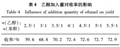 酯化反應為可逆反應,當反映開展到一定水平時,二者創(chuàng)建起穩(wěn)定平衡,使反映不可以沿一個方位開展究竟。為了更好地使反映向所須要的角度開展,要毀壞這一均衡,提升生成物的濃度值或是將反應物除去,試著提升酒精的濃度值使反映向轉化成乙酯的角度開展。酒精的質量濃度對酯化反應成品率的危害見表4。