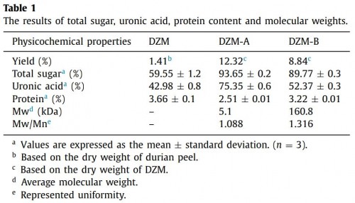 木棉樹科榴蓮果屬綠色植物榴蓮果(Durio zibethinus Murr)別名韶子或麝香貓果,果實中帶有礦物、碳水化合物及維他命等,營養(yǎng)成分極高。榴蓮皮在榴蓮果中占據(jù)65%~70%,但一直以來都很少有運用。榴蓮皮做為農業(yè)產品廢料不僅僅會導致自然資源的消耗,并且滋長的細菌和蟲害會導致明顯的空氣污染。因而,榴蓮皮的深層次開發(fā)設計和開發(fā)利用將發(fā)展趨勢綠色經濟,造成豐厚的生態(tài)效益和社會經濟效益。本分析從榴蓮皮中分離出來出2個阿拉伯膠含糖量DZM-A和DZM-B,根據(jù)IR、GC和NMR等技術性對其進行精細結構分析,及其根據(jù)身體之外凝血四項指標值及其氣滯血瘀大白鼠實體模型討論了DZM-A和DZM-B的身體外抗凝活力。