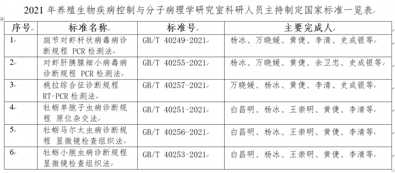江海水產(chǎn)品研究室飼養(yǎng)微生物疾病控制與分子結(jié)構(gòu)病理生理學調(diào)研室長期性專注于水生物疫情的分析和規(guī)范化建設(shè)工作中,為支撐點全國各地水生物病防服務(wù)體系進行了奉獻。調(diào)研室2011年被規(guī)定為世界動物國際衛(wèi)生組織(OIE)草蝦白斑病綜合癥(WSD)、感染性皮下組織和造血功能機構(gòu)壞死病參照試驗室,在草蝦病源檢驗、診斷試劑給予、技術(shù)服務(wù)、確診新產(chǎn)品開發(fā)、試行修定、國際性能力驗證等層面成績顯著。創(chuàng)建了多種多樣病源檢驗及疾患診斷規(guī)范,制定并公布我國及農(nóng)牧業(yè)領(lǐng)域水產(chǎn)品疾患診斷規(guī)范27項;參加OIE水生物疾患診斷指南和身心健康刑法典國家標準的修定,創(chuàng)造發(fā)明的T-E染色法被OIE采取為WSD確診的國家標準方式之一。2014-2021年,持續(xù)八年受農(nóng)業(yè)農(nóng)村部水產(chǎn)業(yè)路政管理處和全國各地海產(chǎn)科技推廣客運站的授權(quán)委托,擔負白斑病綜合癥病毒感染、感染性皮下組織和造血功能機構(gòu)壞死病毒、十足目虹彩病毒I、偷死野田村病毒感染、蝦肝腸胞蟲、致亞急性肝胰腺壞死病副溶血弧菌等能力驗證新項目和工作能力評定每日任務(wù),強有力支持了中國水生物疾患診斷試驗室技術(shù)性技能提升工作中。