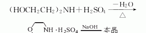 2.由二乙醇胺在硫酸存在下脫水環(huán)合而制得。將二乙醇胺加入反應鍋內,在60℃以下滴加H2SO4,加畢升溫至185~195℃,保溫30min,冷卻至60℃,滴加NaOH溶液,使pH=11,冷卻過濾,濾液精餾,收集130℃以下餾分即為嗎啉。