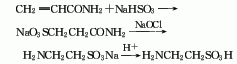 (2)牛黃酸的制備。將66.2gNa2SO3加入500mL燒瓶中,加250mL水溶解,在50℃下開(kāi)始滴加上述產(chǎn)品58g溶于15mL水的溶液,6h滴完;然后升溫至65℃反映3h,升溫至90℃反應(yīng)4h,最后回流1h,測(cè)定牛黃酸含量折算收率94%。用電滲析法除去無(wú)機(jī)鹽,然后濃縮結(jié)晶得牛黃酸57.2g,提取收率91.5%,純度99.6%,總收率83.6%.