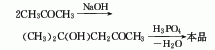 雙丙酮醇(3):于索氏提取器中,加入丙酮(2)660mL(9mol),于索氏提取器的提取管中用濾紙包好氫氧化鋇,水浴加熱回流提取100h。改為蒸餾裝置,先蒸出丙酮,而后減壓蒸餾,收集62~64℃/1.75kPa的餾分,得雙丙酮醇(3)370~410g,收率68%~74%。異亞丙基丙酮(1):于裝有分餾裝置的圓底燒瓶中,加入雙丙酮醇(3)350g(6mol),0.1g碘,幾粒沸石,油浴加熱進(jìn)行蒸餾。收集如下各餾分:85℃以下的餾分(含丙酮及少量的異亞丙基丙酮);85~126℃的餾分(含水及異亞丙基丙酮,靜置后可分層,下層為水);126~130℃的餾分(異亞丙基丙酮)。中間餾分分出水后用無水碳酸鉀干燥,與第三種餾分合并后,重新蒸餾,收集127~129℃的餾分,得異亞丙基丙酮。第一餾分用無水碳酸鉀干燥后重新蒸餾,可得少量的異亞丙基丙酮。共得異亞丙基丙酮(1)250~280g,收率85%~95%。[1]