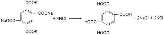 2.由二甲苯(對(duì)二甲苯或間二甲苯)經(jīng)氯甲基化、氧化、環(huán)化而得。工業(yè)品均苯四甲酸二酐為白色至淡黃綠色結(jié)晶,一級(jí)品熔點(diǎn)284-287℃,二級(jí)品熔點(diǎn)283.5-287℃。由1,2,4-三甲苯用氧化法生產(chǎn)時(shí),每噸產(chǎn)品消耗1,2,4-三甲苯3000kg、丙烯1200kg。