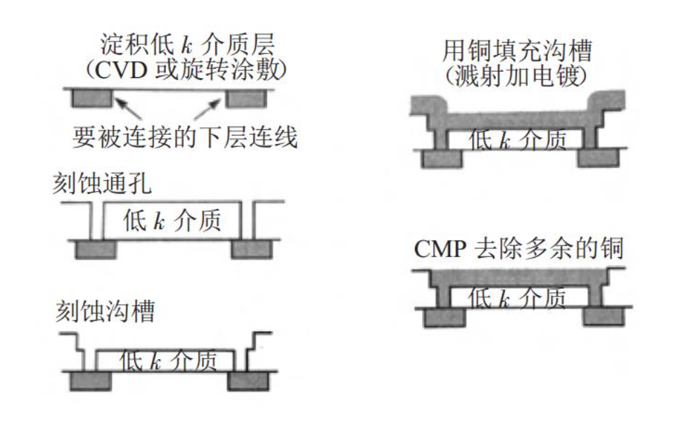 銅CMP工藝生成于二十一世紀(jì)初130nm節(jié)點(diǎn)及其之后,始終延用到納米集成電路28~22nm節(jié)點(diǎn)。當(dāng)前的銅CMP工藝通常分為三步: