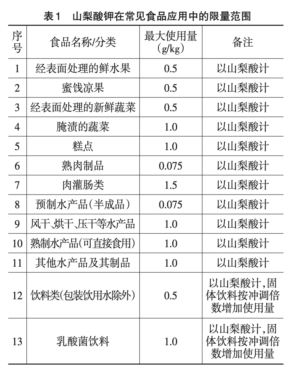 根據(jù)2014年發(fā)布的《食品安全國家標(biāo)準(zhǔn) 食品添加劑使用標(biāo)準(zhǔn)》,山梨酸鉀在各種常見食品中的使用限量如下: