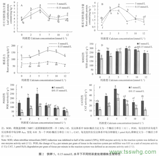 采用甲基百里香酚藍測定法定量檢測煙株根系中鈣離子含量,根據試劑盒使用步驟測定(試劑盒購自南京建成生物工程研究所)。