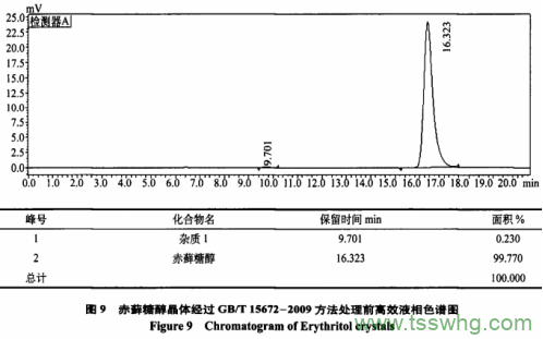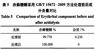 參照GB/T15672—2009中的水解法對(duì)赤蘚糖醇進(jìn)行處理,處理前后成分含量結(jié)果見表5。