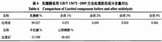 參照GB/T15672—2009中的水解法對(duì)乳糖醇進(jìn)行處理,處理前后成分含量結(jié)果見表6。