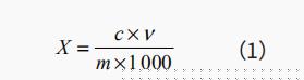 式(1)中:X—試樣中待測(cè)組分含量(g/kg);c—由標(biāo)準(zhǔn)曲線得出的試樣液中待測(cè)物的質(zhì)量濃度(mg/L);v—試樣定容體積(mL);m—試樣質(zhì)量(g)。