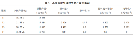 不同施肥處理對上海青和生菜產(chǎn)量的影響分別見表4和表5。
