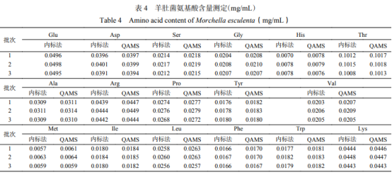 采用QAMS法測(cè)定羊肚菌中17種氨基酸的含量,建立并應(yīng)用內(nèi)標(biāo)法驗(yàn)證該方法同時(shí)測(cè)定羊肚菌中17種氨基酸含量的可行性,結(jié)果表明,兩種方法測(cè)得的結(jié)果無(wú)顯著性差異(P>0.05),不同色譜柱和儀器之間的相對(duì)校正因子重復(fù)性良好,且QAMS法操作簡(jiǎn)單,極大程度提高了工作效率,可為建立羊肚菌的質(zhì)量評(píng)價(jià)提供參考。同時(shí),為羊肚菌的應(yīng)用提供一定的理論支持,為羊肚菌的開發(fā)利用指明了方向,對(duì)推動(dòng)羊肚菌行業(yè)的發(fā)展有重要意義。