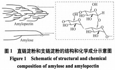 淀粉是一種葡萄糖支化均聚物,具有α一(1→4)直鏈和β一(1→6)支鏈。如圖1所示,淀粉由兩種聚合物組成,分子量分布較寬:直鏈淀粉含有較少的長支鏈且分子量適中;而支鏈淀粉的支鏈短,其分子量約高兩個數(shù)量級。淀粉類產(chǎn)品對人體通常是安全的。作為食品添加劑,改性淀粉滿足了特殊的飲食需求,如純素食、清真、猶太潔食和無脂。天然淀粉在水中的溶解度有限,導(dǎo)致其在工業(yè)上的應(yīng)用也有限。為了提高溶解性,需要(i)結(jié)構(gòu)變化,即將淀粉水解成更小的分子,(ii)化學(xué)改性,如乙酸酯或辛烯基琥珀酸酐(OSA),如圖2所示。取代基團(tuán)通常與羥基發(fā)生反應(yīng),從而使淀粉具有理想的性質(zhì)。