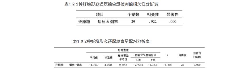 由表12、13可知,對于還原糖含量檢測值,絲狀與粉狀2種形態(tài)的檢測結(jié)果存在極顯著相關(guān),并在P=0.05的水平上存在極顯著性差異。