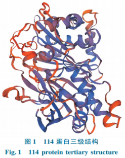 經(jīng)SWISS-MODEL同源建模發(fā)現(xiàn),114、148均適應(yīng)?;D(zhuǎn)移酶模型,但其構(gòu)象略不同(圖1,2)。