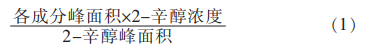 選擇匹配度≥70,采用內(nèi)標(biāo)法定量分析。將10μL質(zhì)量濃度為10mg/mL的2-辛醇和5mL待測(cè)樣品混合均勻,對(duì)含有內(nèi)標(biāo)物的樣品通過GC-MS進(jìn)行分析。根據(jù)待測(cè)樣品和內(nèi)標(biāo)物的峰面積,計(jì)算待測(cè)組分在樣品中的含量。