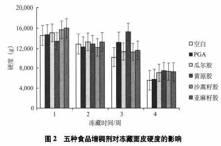 3、五種增稠劑對凍藏面皮蒸煮后質(zhì)構(gòu)的影響