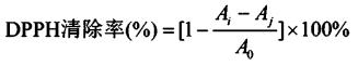 參照于慧等人的方法進(jìn)行DPPH自由基清除率的測定。將2mL一定濃度的綠豆多肽溶液和2mL的0.12mm01·L-1DPPH溶液進(jìn)行混合,避光于25℃條件下反應(yīng)30min,取出后于517nm波長下進(jìn)行吸光值的測定,此時(shí)吸光度值記錄為Ai;將上述過程中的2mLDPPH溶液用無水乙醇取代,然后與2mL綠豆多肽溶液進(jìn)行反應(yīng),此條件下測定吸光值記錄為Aj,將2mL無水乙醇與2mLDPPH溶液反應(yīng)的條件作為空白組,此時(shí)記錄吸光值為Ao。