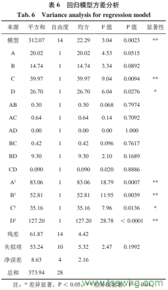 2、響應(yīng)面試驗(yàn)設(shè)計結(jié)果及分析