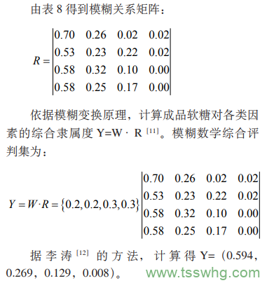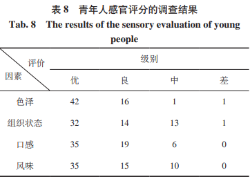 分析成品軟糖質(zhì)構(gòu)可知該產(chǎn)品在市場化之前需要優(yōu)化軟糖的硬度、黏性、咀嚼性、膠著性等特性,適合以類似果丹皮的卷曲、重疊方式加工包裝。以模糊數(shù)學(xué)綜合評判法對成品軟糖在青年人群中的受歡迎程度進行評判,表明若產(chǎn)品投放市場,青年人的評價為良。