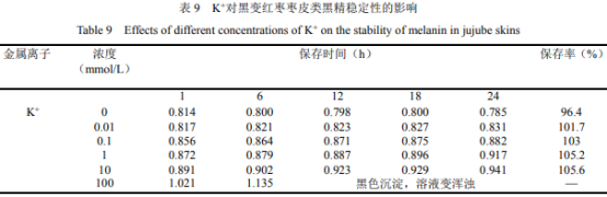 A、K+對黑變紅棗棗皮類黑精穩(wěn)定性的影響