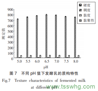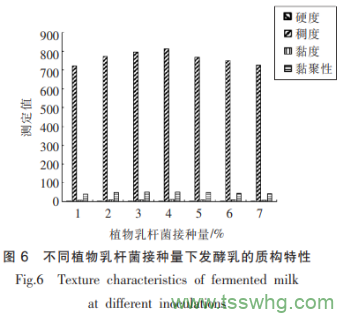 將植物乳桿菌接種純牛奶發(fā)酵進(jìn)行單因素試驗(yàn),所得發(fā)酵乳的質(zhì)構(gòu)變化如圖4~圖8所示。