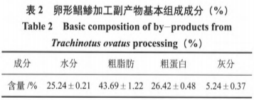 1、卵形鯧鯵加工副產(chǎn)物基本成分測定