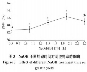 (2)Na0H不同處理時(shí)間對明膠得率的影響