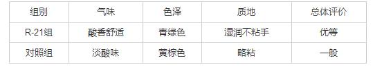 將發(fā)酵120d的青貯飼料按德國(guó)農(nóng)業(yè)協(xié)會(huì)青貯感官評(píng)分標(biāo)準(zhǔn)及等級(jí)評(píng)定方法,從色澤、氣味、質(zhì)地三方面進(jìn)行感官綜合評(píng)價(jià)。具體評(píng)價(jià)結(jié)果如表1所示,添加植物乳桿菌R-21的發(fā)酵飼料在氣味、色澤、質(zhì)地三方面的各個(gè)指標(biāo)均優(yōu)于對(duì)照組,與郝俊(2019)、張旭(2019)等研究結(jié)果一致,表明添加乳酸菌能顯著改善青貯發(fā)酵飼料的品質(zhì)。