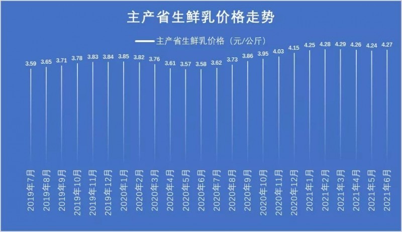 據(jù)農(nóng)業(yè)農(nóng)村部對全國各地500個(gè)縣農(nóng)貿(mào)市場指定檢測,2021年4—6月份, 河北省、山西省、內(nèi)蒙古自治區(qū)、遼寧省、黑龍江省、山東省、河南省、陜西省、甘肅、新疆省等10個(gè)主產(chǎn)省生鮮食品乳均價(jià)保持在1公斤4.26元上下。4月份、5月份、6月份主產(chǎn)省生鮮食品乳均價(jià)各自為4.26元/KG、4.24元/KG、4.27元/KG。總的看,第二季度10個(gè)主產(chǎn)省生鮮食品乳均價(jià)相對穩(wěn)定,同期相比增漲18.7%,環(huán)比下降0.2%。