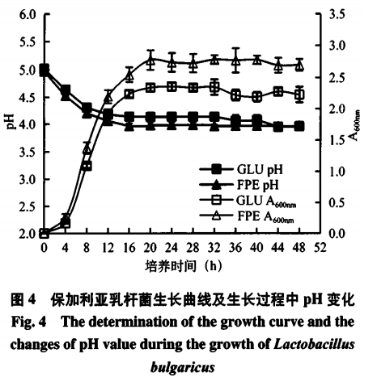 較為加上FPE的細胞培養(yǎng)液和基本細胞培養(yǎng)液的塑造實際效果能夠 發(fā)覺,加上了FPE細胞培養(yǎng)液中的乳酸桿菌菌液吸光度值均超過基本細胞培養(yǎng)液的吸光度值。pH的變動狀況與雙岐桿菌的變化規(guī)律基本一致,在進到穩(wěn)定型后,該值長期保持,在4.0~4.3中間。