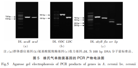 革蘭氏陽性菌陰性菌AHLS受體的人群磁感應(yīng)系統(tǒng)軟件主要是由luxRI的同源基因管控。運(yùn)用PcR技術(shù)指標(biāo)分析維氏氣單胞菌中的luxRI同源基因,結(jié)果見圖5a。剖析發(fā)覺2個精彩片段編碼序列各自為基因表達(dá)管控因素AcuR和自誘發(fā)遺傳基因AcuI,這與JangId等的分析結(jié)果同樣,該專家學(xué)者初次在維氏氣單胞菌mTcc3249中檢查到AcuRI人群磁感應(yīng)系統(tǒng)軟件。除此之外,剖析維氏氣單胞菌的碳水化合物脫羧酶遺傳基因和感病遺傳基因,結(jié)果見圖5b、5c。鳥氨酸脫羧酶遺傳基因(ODC)和磷酸氫鈣脫羧酶遺傳基因(LDC)的驗(yàn)出表明該病菌具備產(chǎn)腐胺和尸胺的工作能力,胞內(nèi)酶遺傳基因(AhyB,ser,liP)的驗(yàn)出表明該菌具備一定的胰蛋白酶活力和淀粉酶活力,微絨毛遺傳基因(flA)的驗(yàn)出表明該菌具備微絨毛健身運(yùn)動和產(chǎn)生生物膜系統(tǒng)的工作能力。
